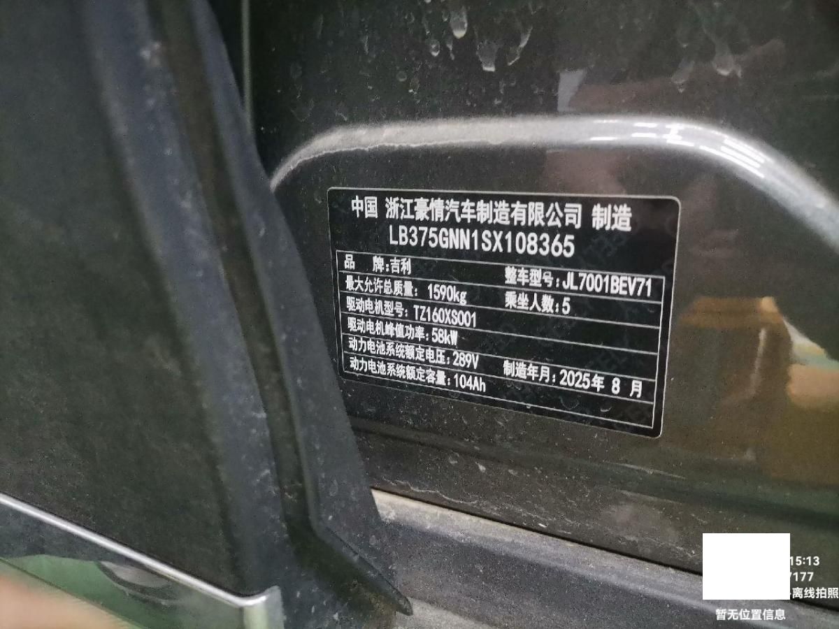 初次登记日期 2025-08-30 车辆名称 吉利银河 星愿