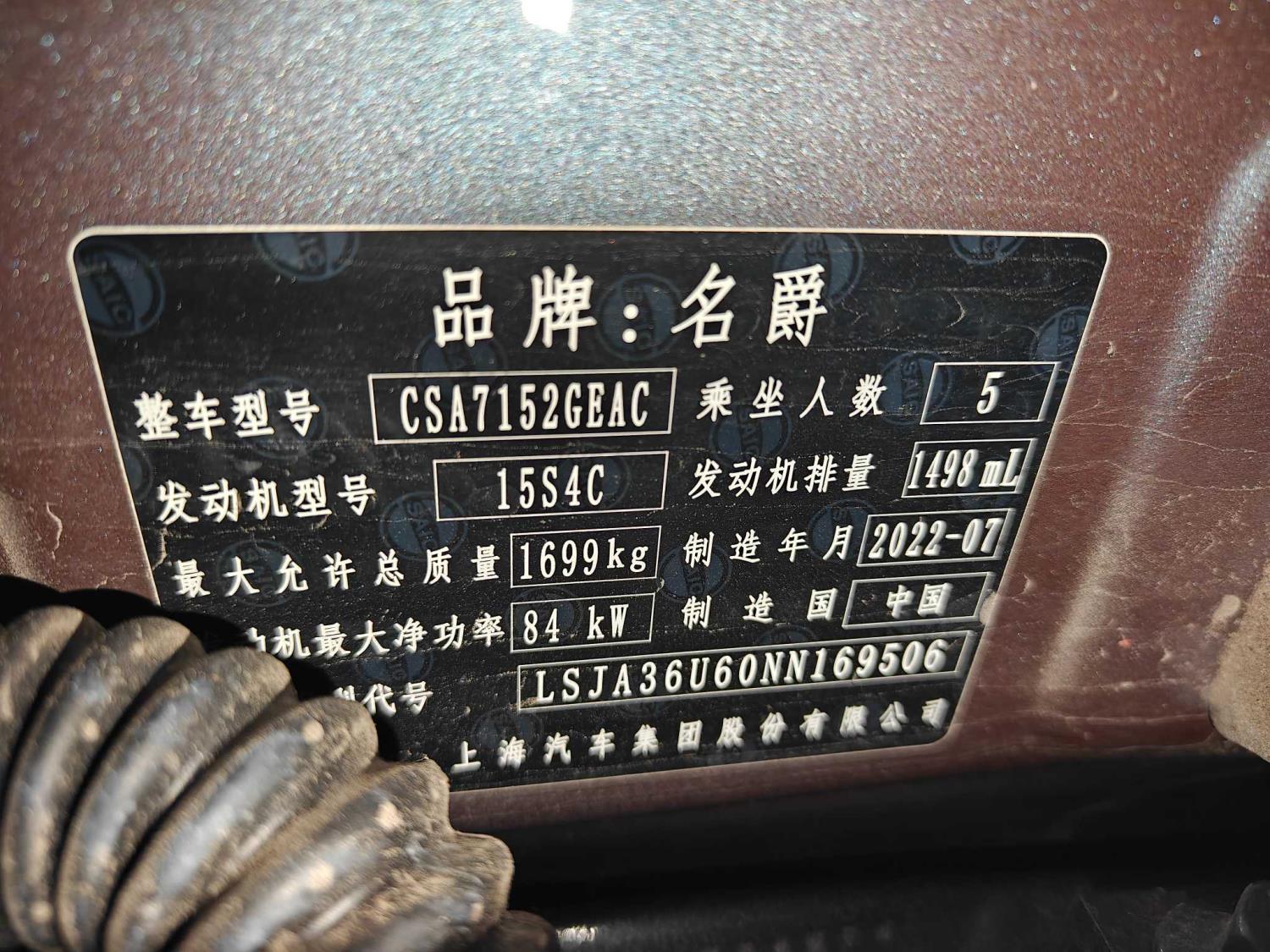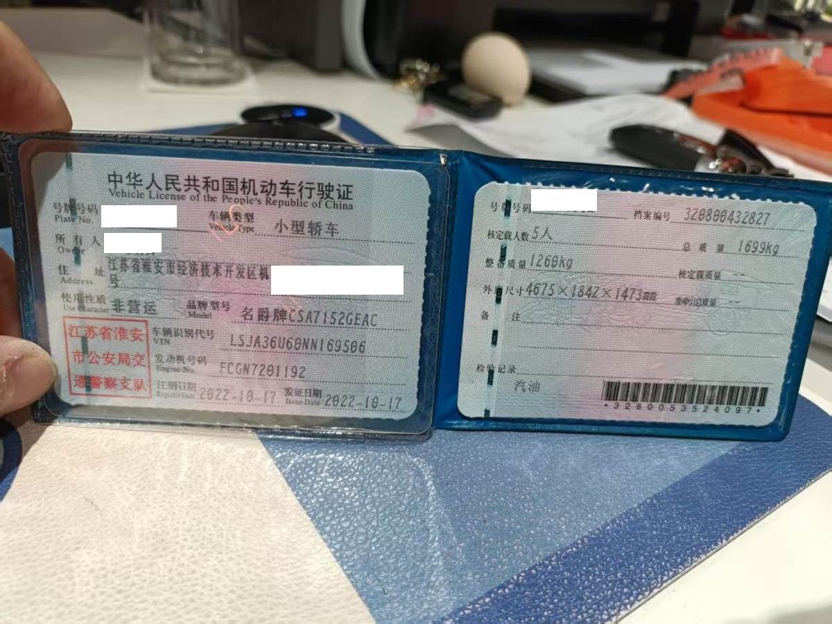 初次登记日期 2022-10-17 车辆名称 名爵 MG5