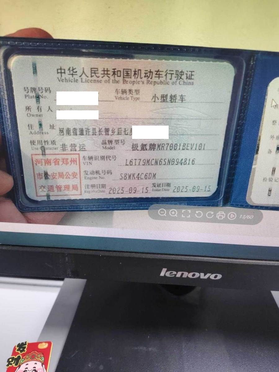 初次登记日期 2025-09-15 车辆名称 极氪牌