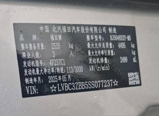 初次登记日期 2025-07-01 车辆名称 福田 图雅诺