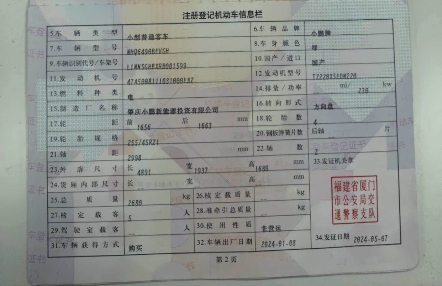 初次登记日期 2024-05-07 车辆名称 小鹏牌