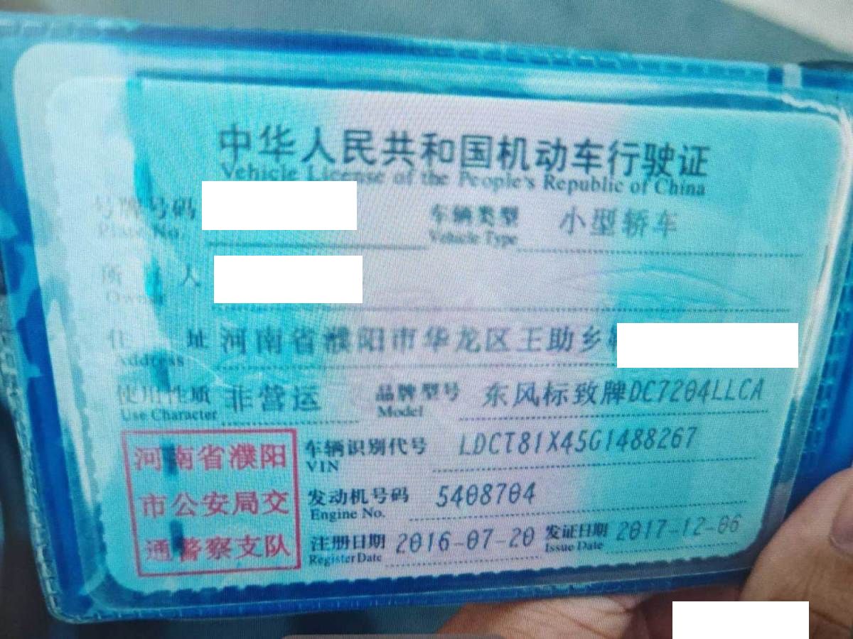 车牌号 豫****** 品牌 东风标致