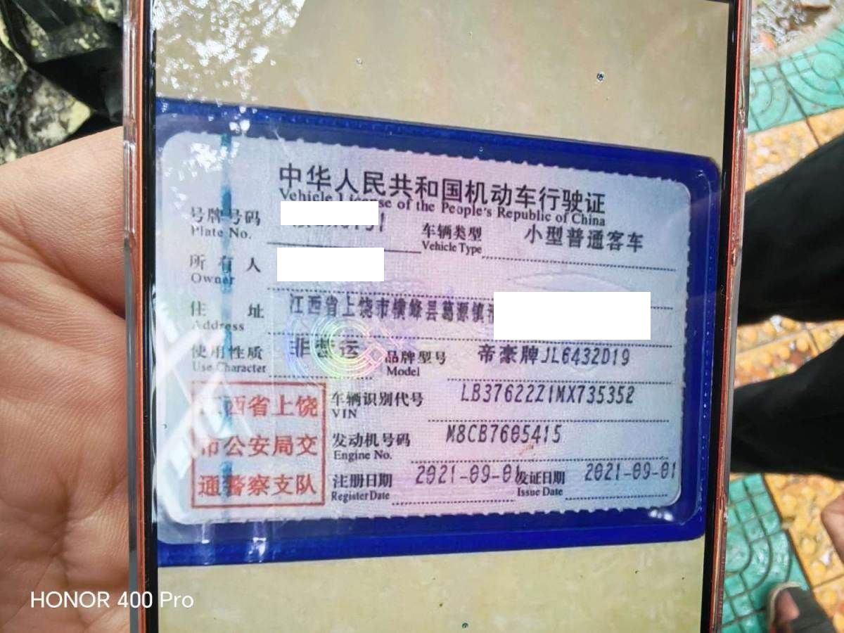 车牌号 赣****** 品牌 吉利