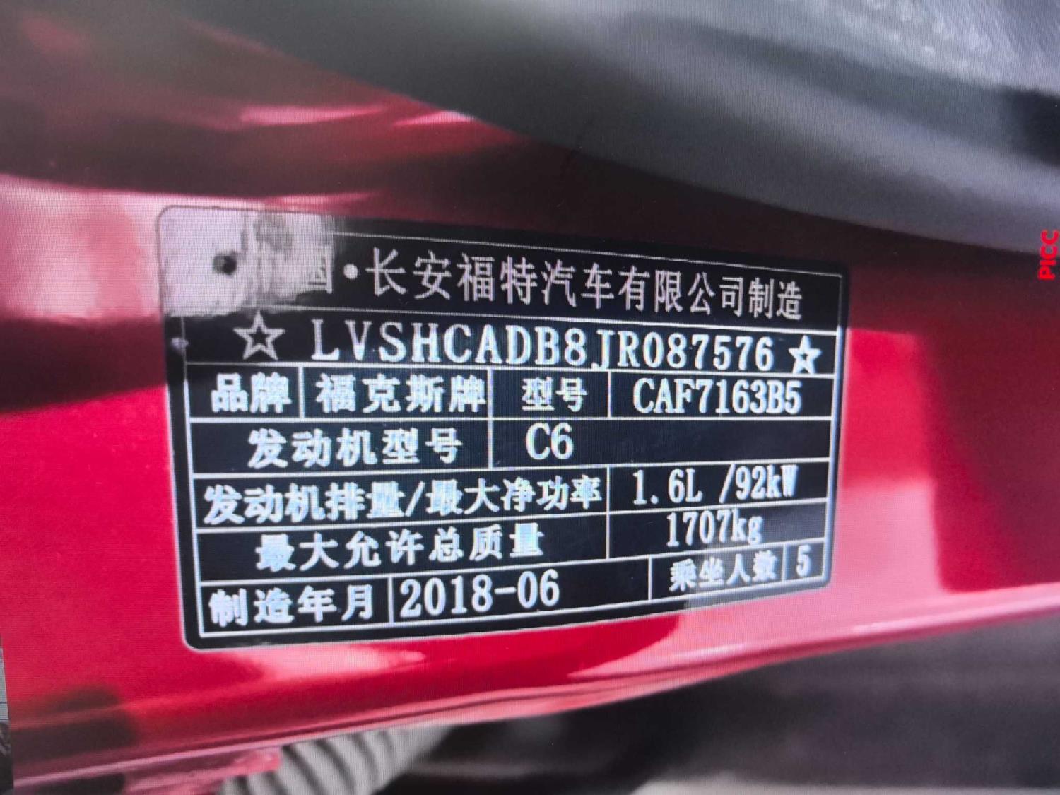 初次登记日期 2018-11-20 车辆名称 福特 福克斯