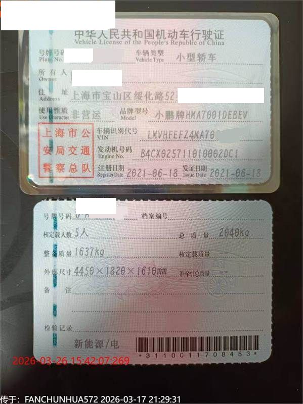 车牌号 沪****** 品牌 小鹏