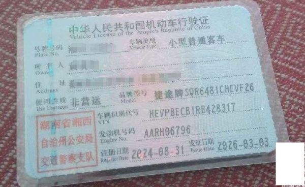 初次登记日期 2024-08-31 车辆名称 捷途山海 捷途旅行者