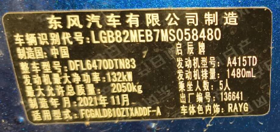 初次登记日期 2021-12-21 车辆名称 启辰星