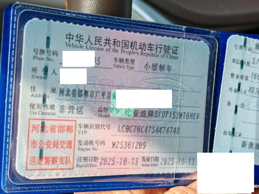 初次登记日期 2025-10-13 车辆名称 比亚迪 秦