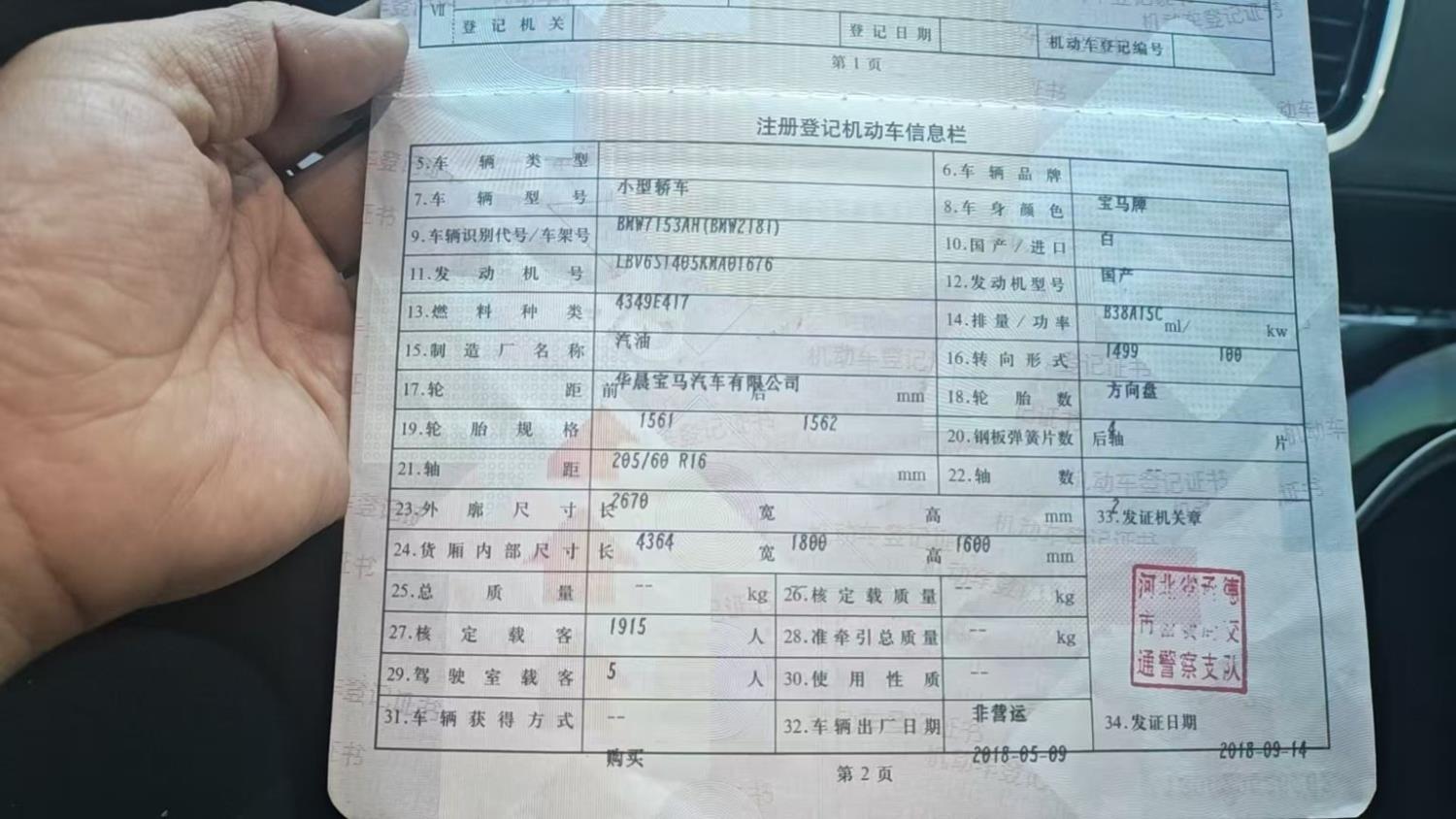 初次登记日期 2018-09-14 车辆名称 宝马2系旅行车