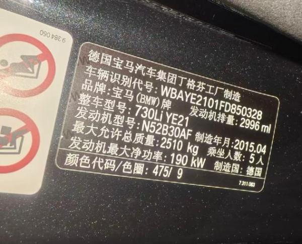 初次登记日期 2015-09-25 车辆名称 宝马7系