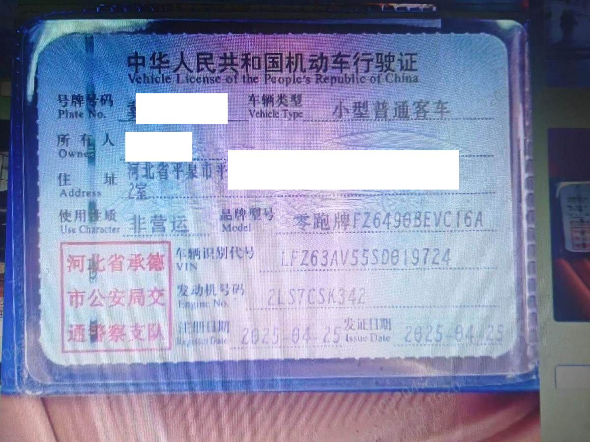 初次登记日期 2025-04-25 车辆名称 零跑汽车