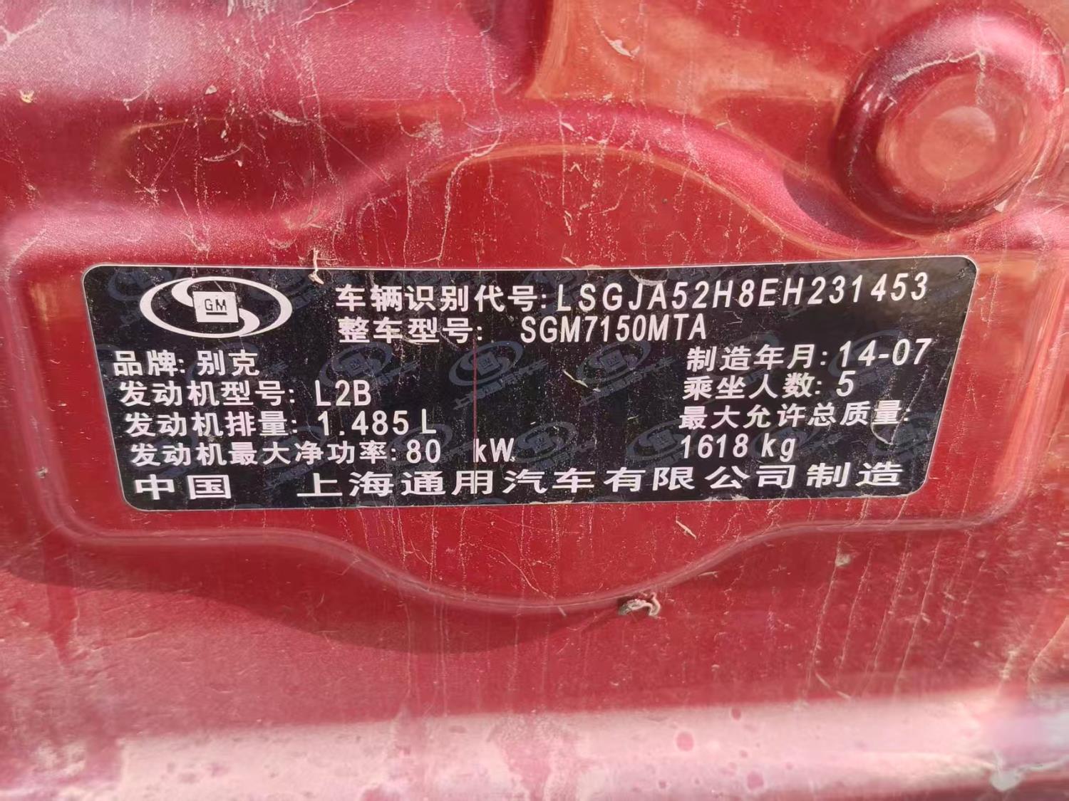 初次登记日期 2014-08-08 车辆名称 别克 凯越