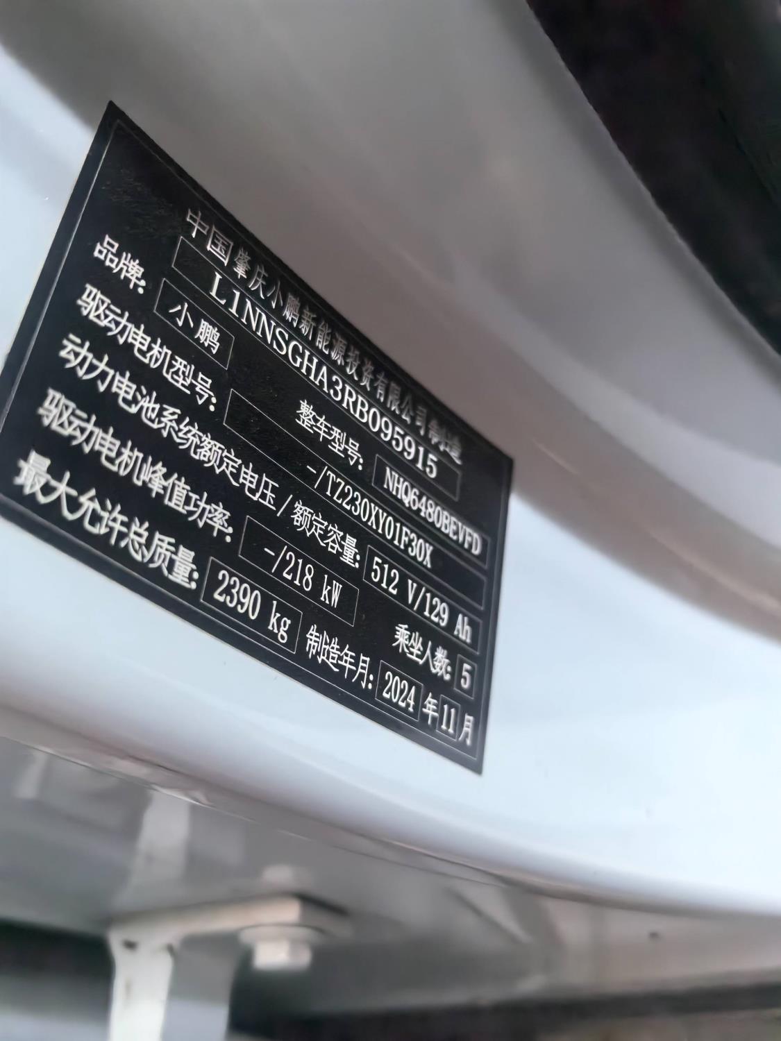 初次登记日期 2024-11-21 车辆名称 小鹏牌