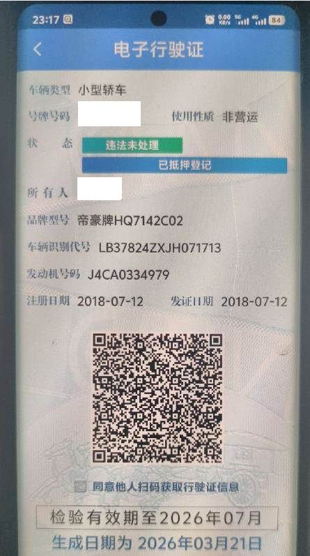 车架号是否受损 未知 使用性质 非营运