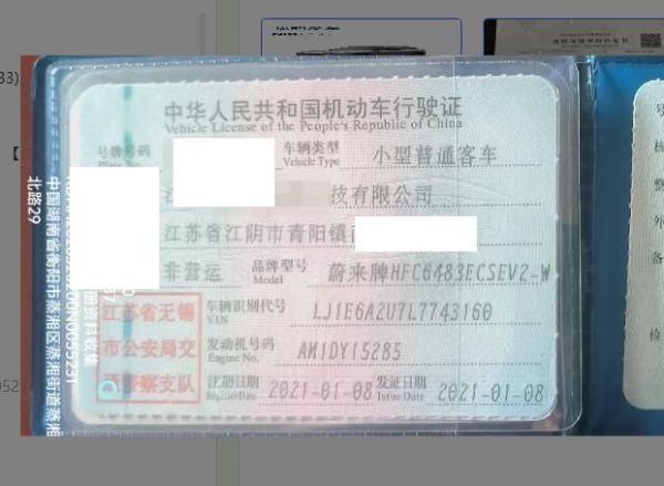 初次登记日期 2021-01-08 车辆名称 蔚来牌