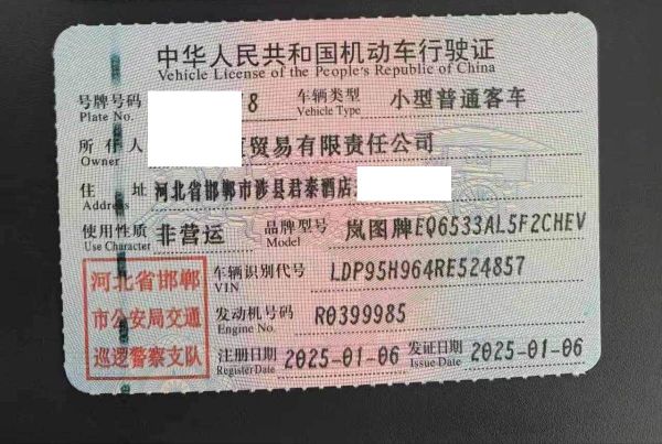 车辆归属地 河北省邯郸 车辆停放仓库 河北省邯郸市邯郸市