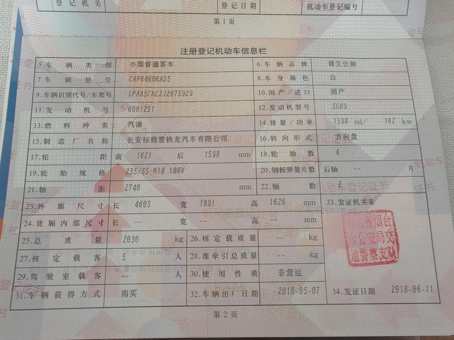 底盘号码 LPAA5CKC2J2075929 变速箱类型 手自一体
