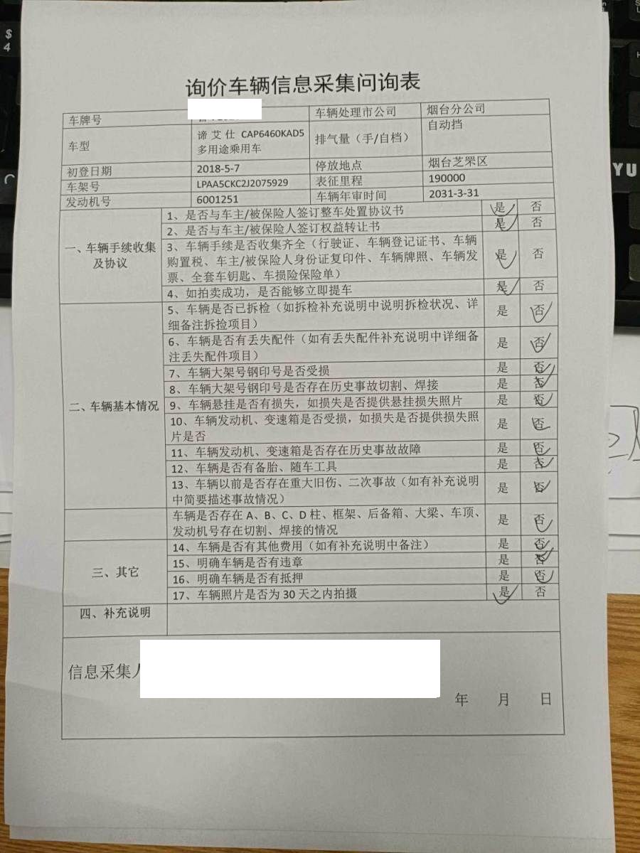 车架号是否受损 未知 使用性质 非营运