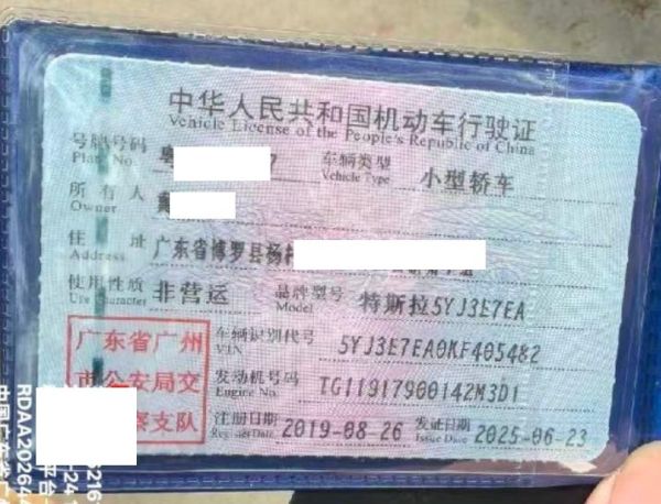 初次登记日期 2019-08-26 车辆名称 特斯拉 Model