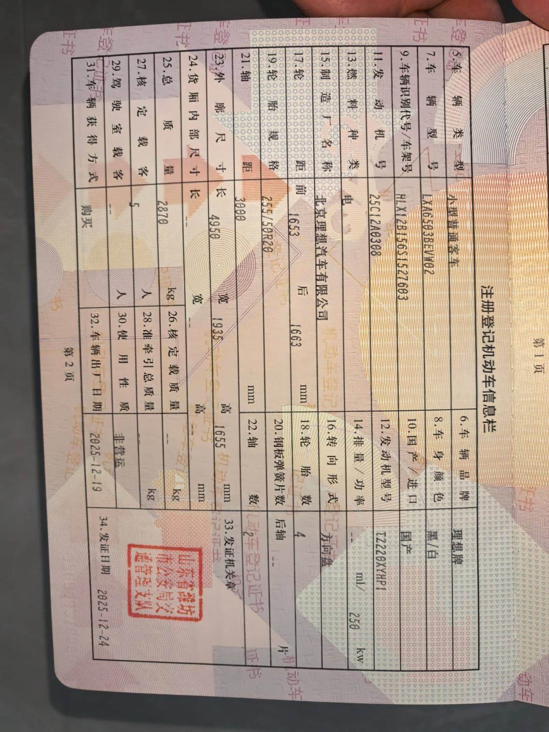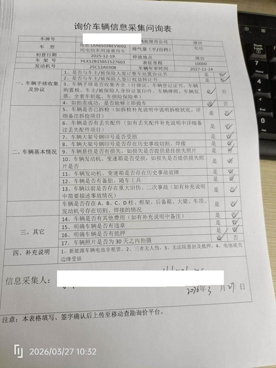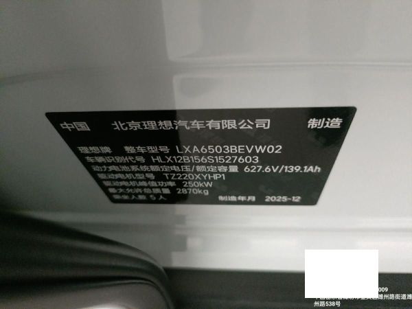 初次登记日期 2025-12-19 车辆名称 理想汽车