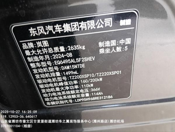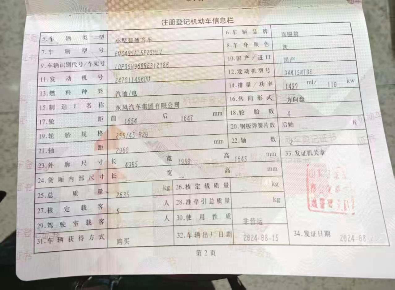 初次登记日期 2024-08-15 车辆名称 岚图汽车