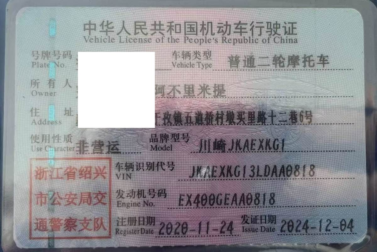 初次登记日期 2020-11-24 车辆名称 川崎牌