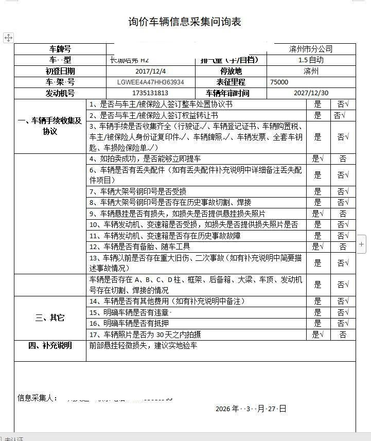 车架号是否受损 使用性质 非营运