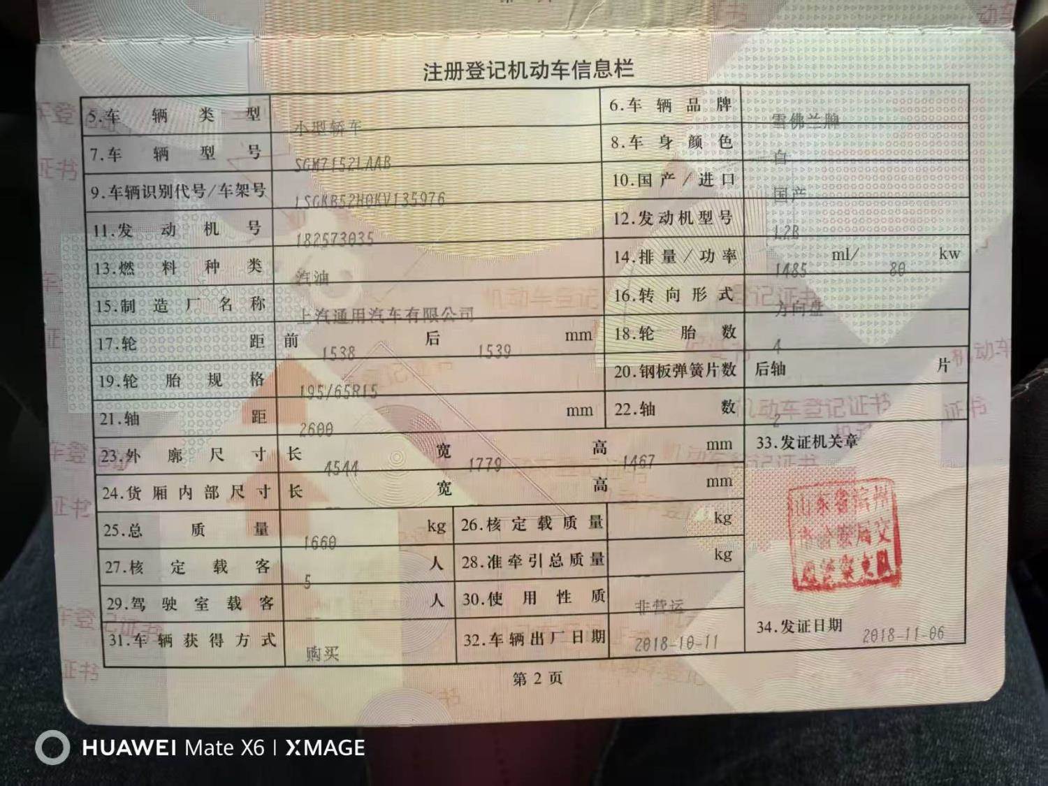 初次登记日期 2018-10-11 车辆名称 雪佛兰 科沃兹