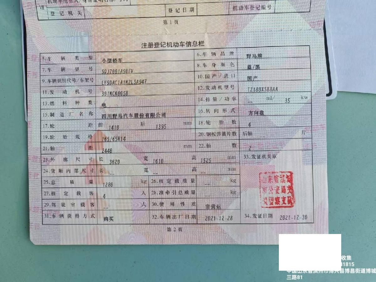 初次登记日期 2021-12-28 车辆名称 雷丁芒果