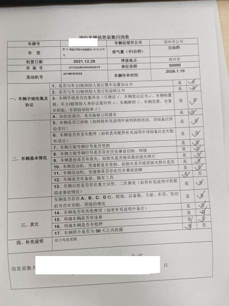 车架号是否受损 使用性质 非营运