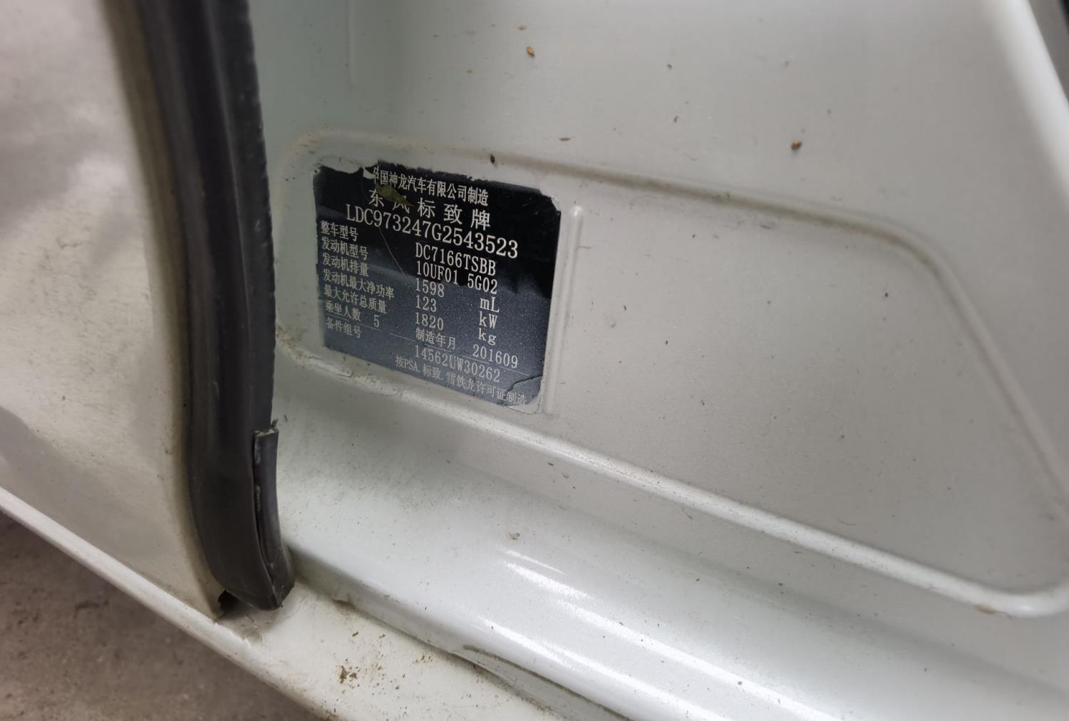 车牌号 皖****** 品牌 东风标致