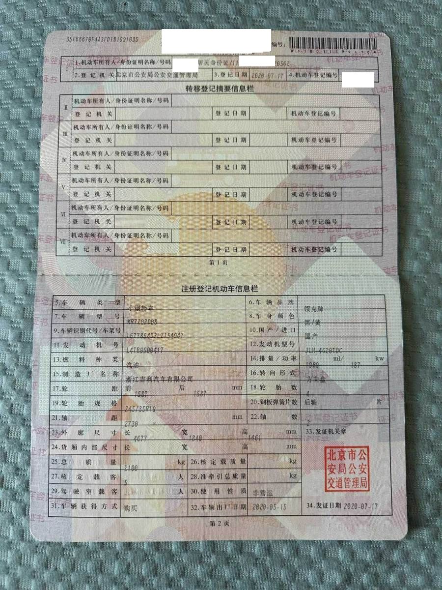 初次登记日期 2020-07-17 车辆名称 领克03