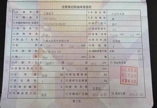 车牌号 鲁****** 品牌 大众
