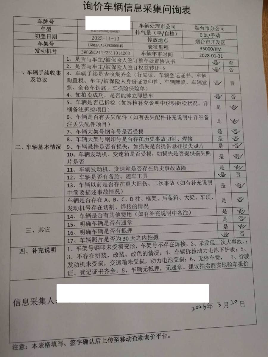 车架号是否受损 使用性质 非营运
