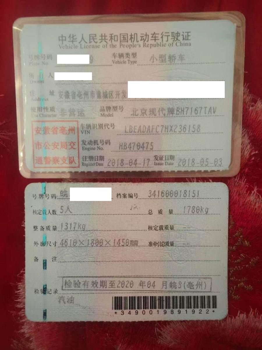 车牌号 皖****** 品牌 现代