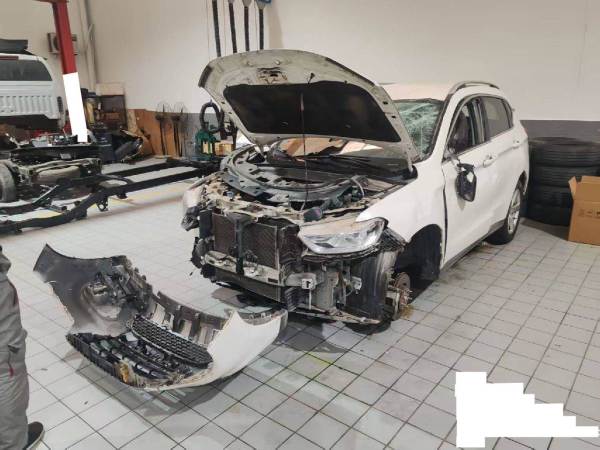 前部车轮、前杠、中网拆检落地,未丢失。右前悬挂损失明显,车辆翻车发动机机油倒灌,油底壳受损。 5年以上车辆报价后不得以二次事故为由提出议价或退车弃标。