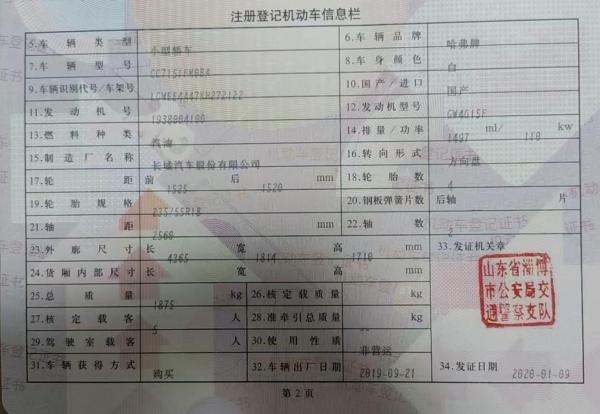 初次登记日期 2020-01-09 车辆名称 哈弗H2
