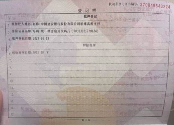 车辆归属地 山东省淄博市 车辆停放仓库 山东省淄博市