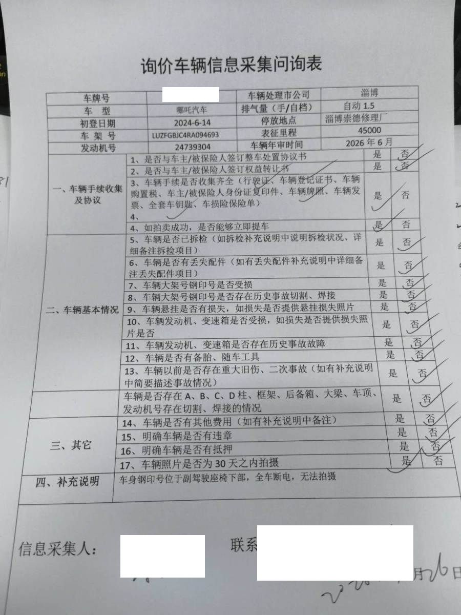 车牌号 鲁****** 品牌 哪吒