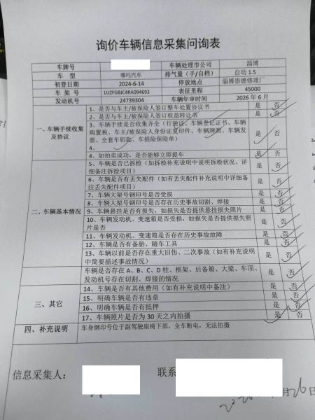 车架号是否受损 未知 使用性质 非营运