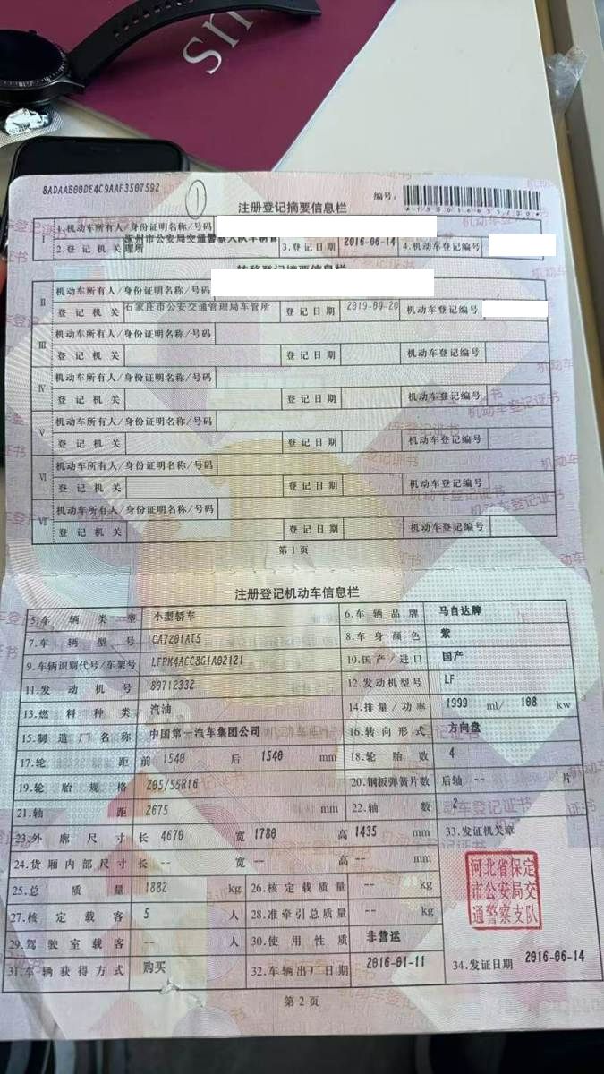 车牌号 冀****** 品牌 马自达