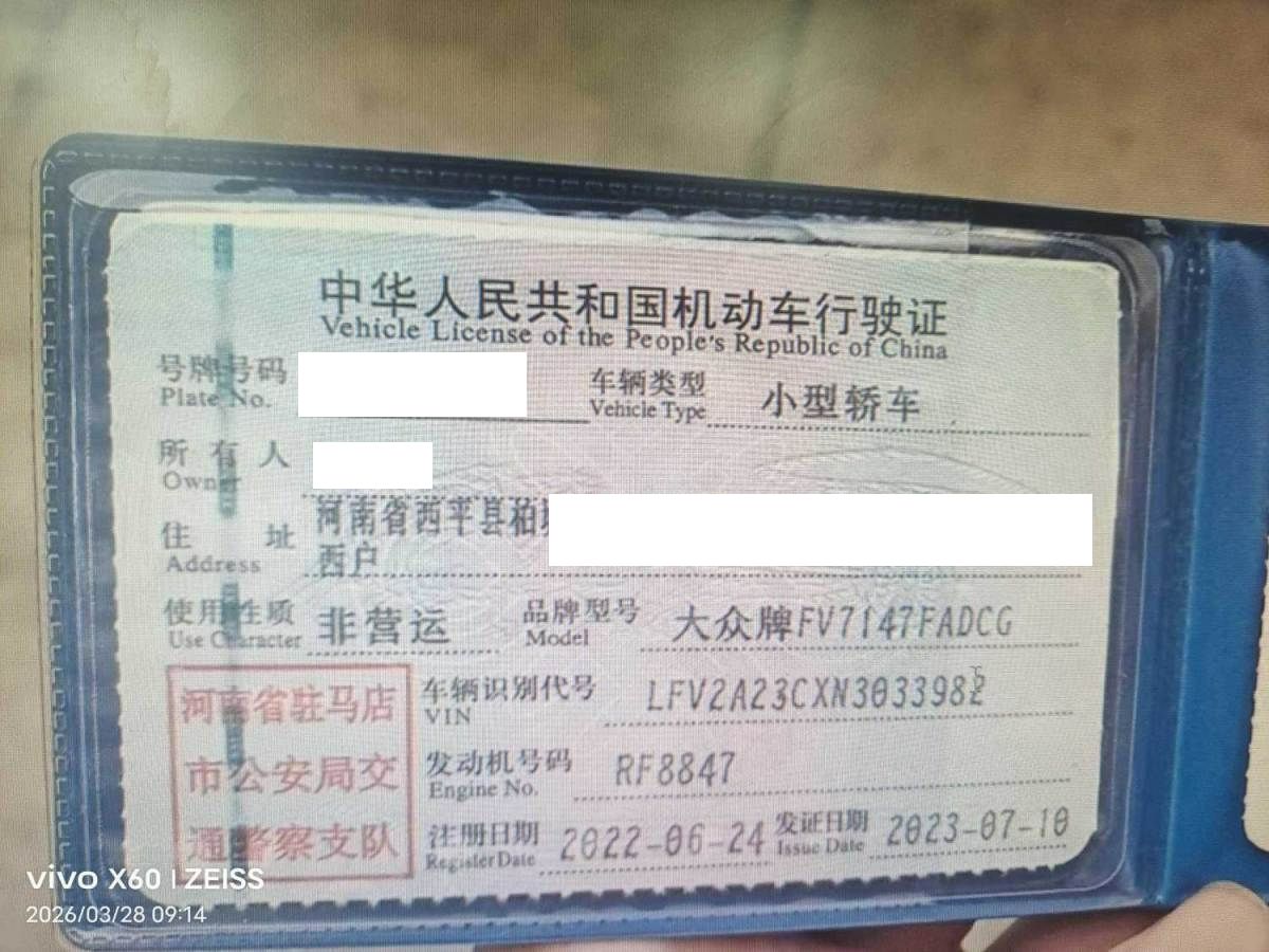 车牌号 豫****** 品牌 大众