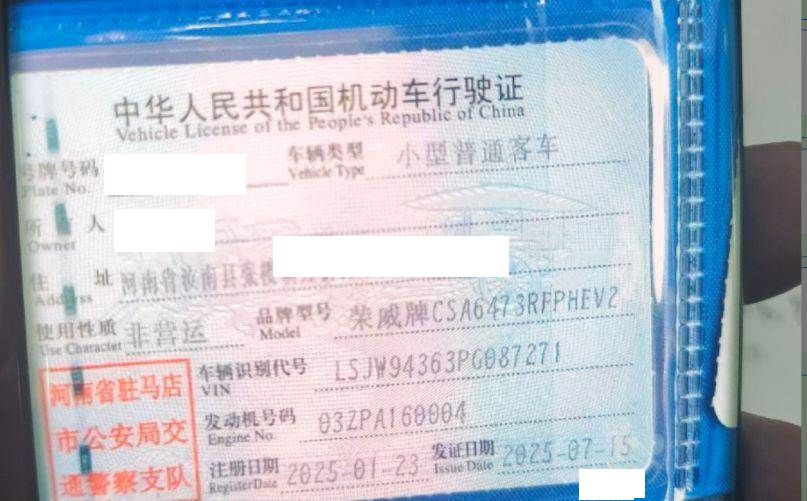 初次登记日期 2025-01-23 车辆名称 荣威 新能源