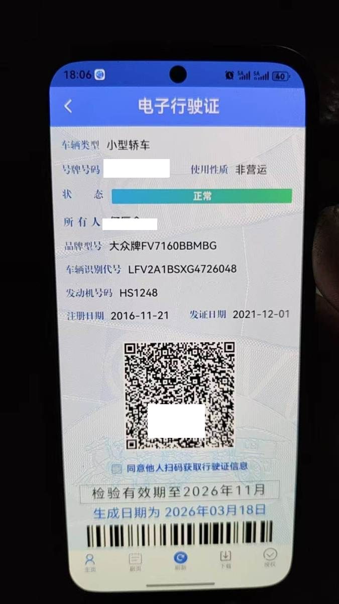 初次登记日期 2016-11-21 车辆名称 大众 捷达