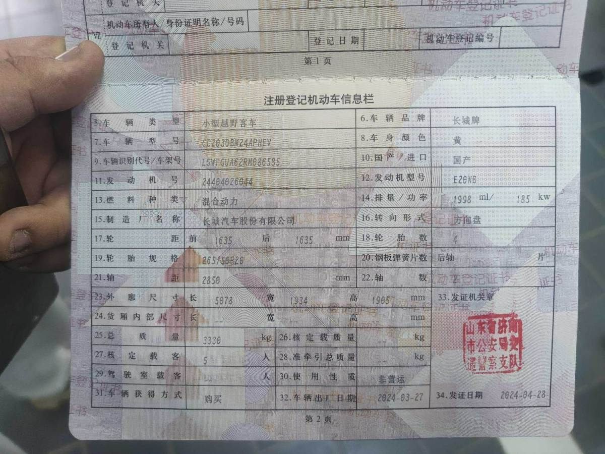 初次登记日期 2024-04-28 车辆名称 坦克 新能源