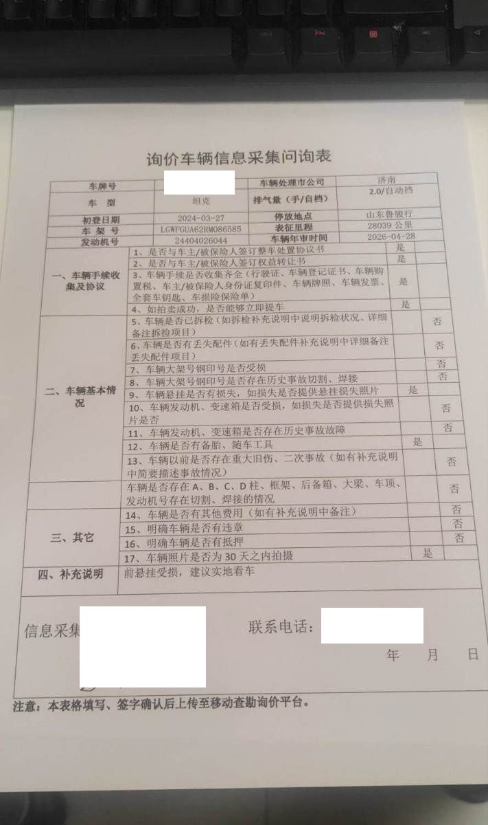 实际车型:2024款坦克500新能源Hi4-T,前悬挂受损,建议实地看车。