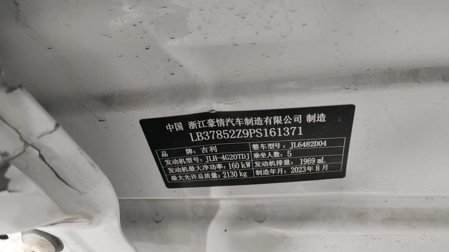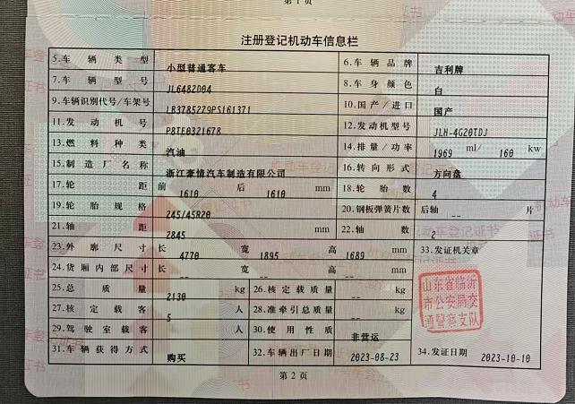初次登记日期 2023-10-10 车辆名称 吉利汽车 星越L