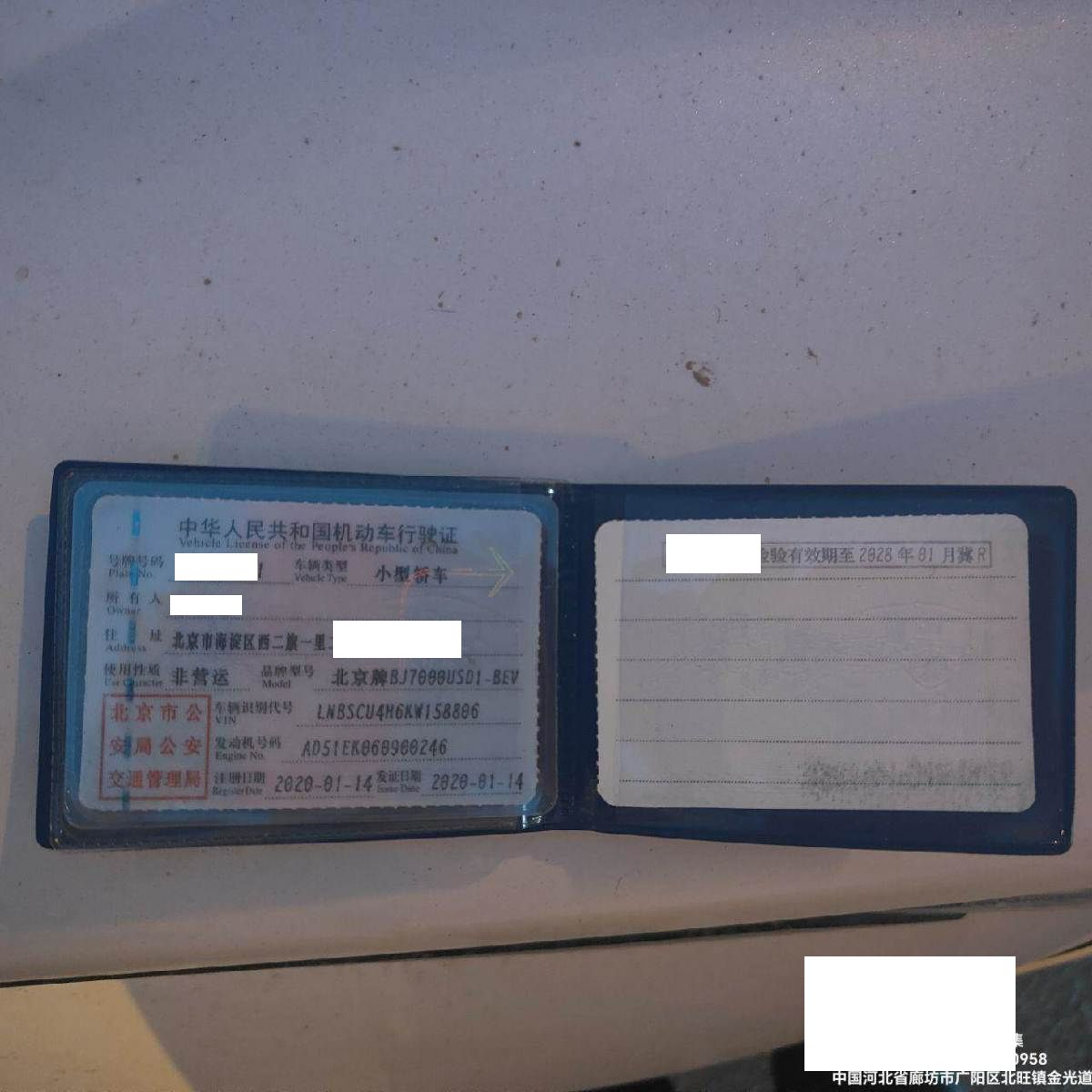 初次登记日期 2020-01-14 车辆名称 北京汽车 北京