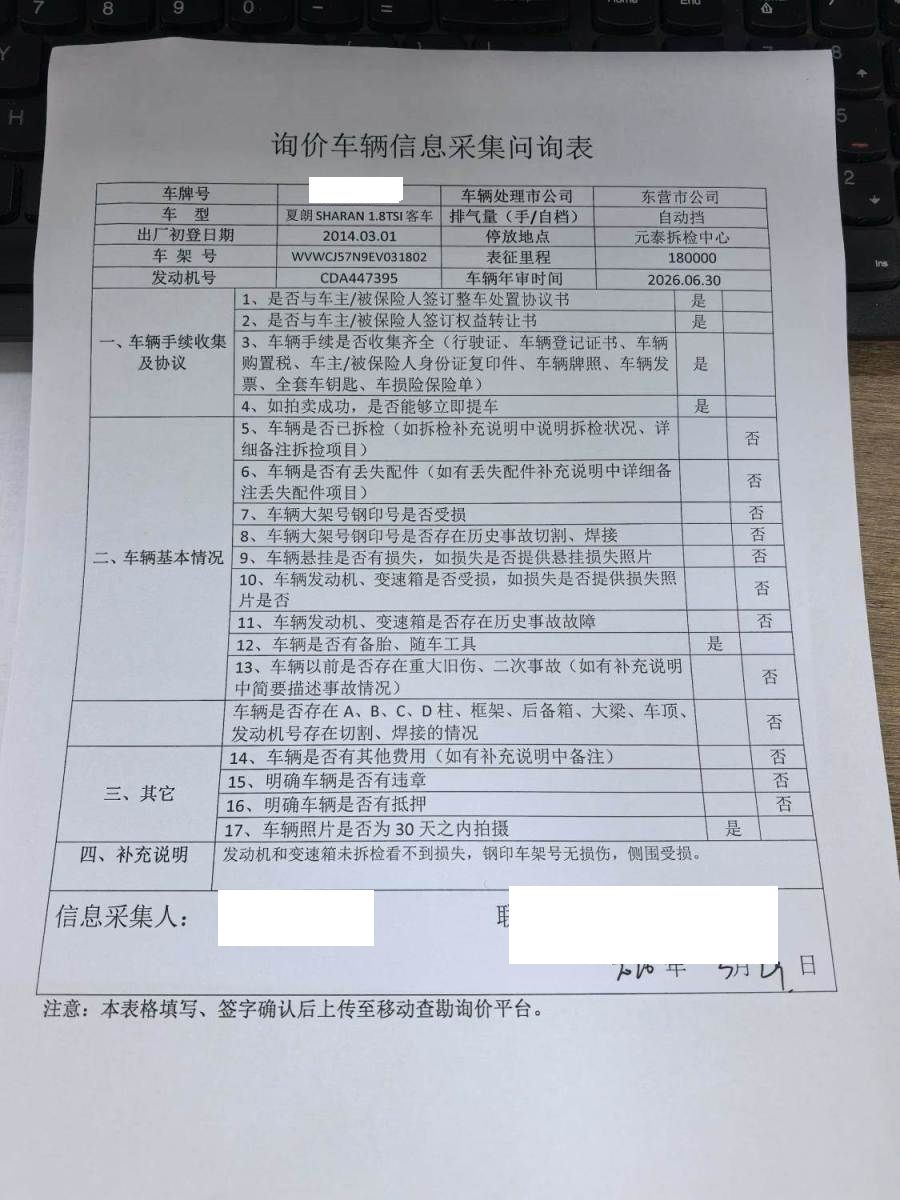初次登记日期 2014-06-23 车辆名称 大众 夏朗