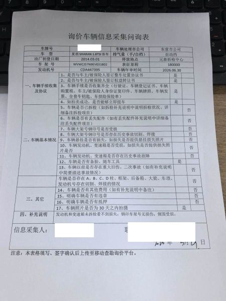 车架号是否受损 未知 使用性质 非营运